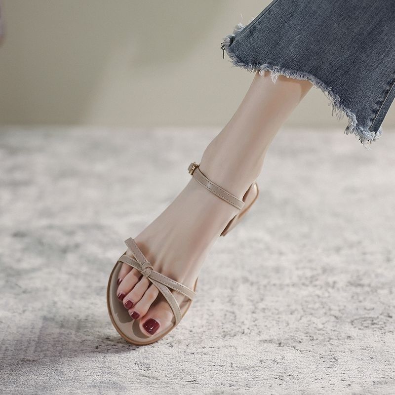One-word Sandals with 2024 Women's Summer New Thick Heel All-match Mid-heel Dress Niche Simple Outwear Fairy