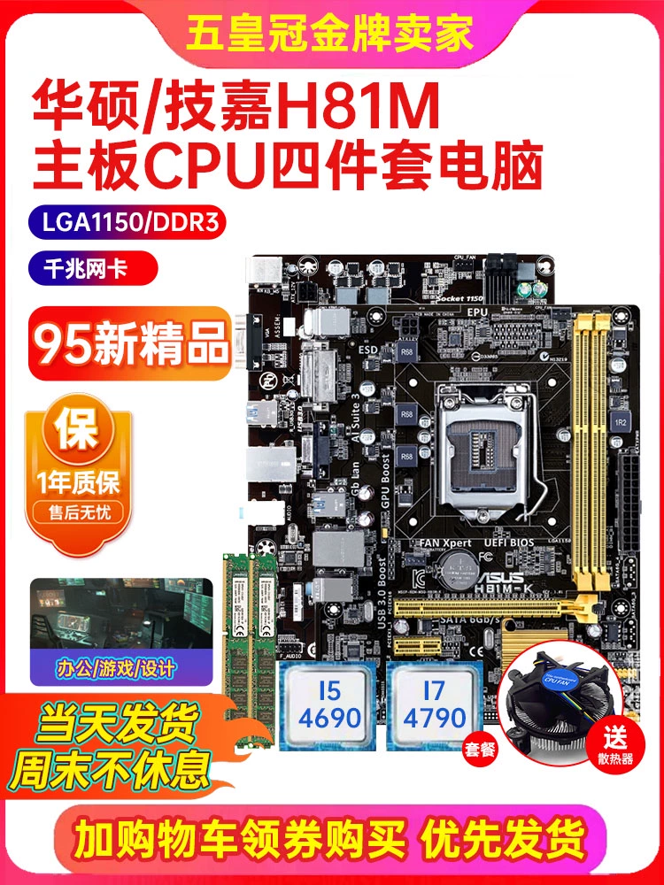 | nameOriginal | One-year warranty with new charge! Gigabyte H81M-DS2 1150 motherboard 1150-pin B85 H81 I7 4790 four-piece set |