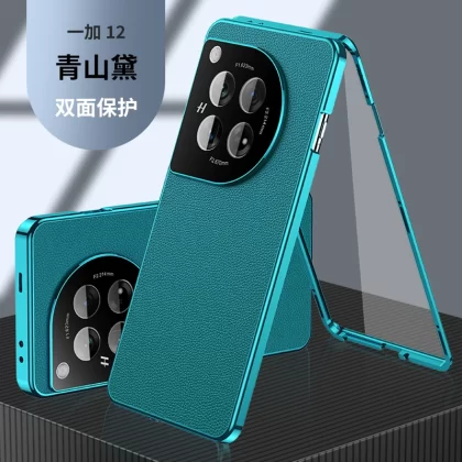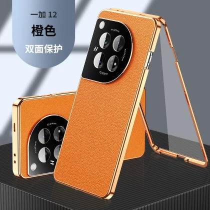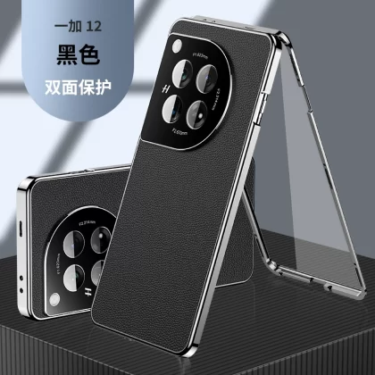 Oneplus 12 mobile phone case new 1+12 plain leather protective cover all-inclusive anti-fall oneplus12 double-sided flip cover magnetic transparent oppo case ultra-thin men and women high-end business and advanced sense suitable