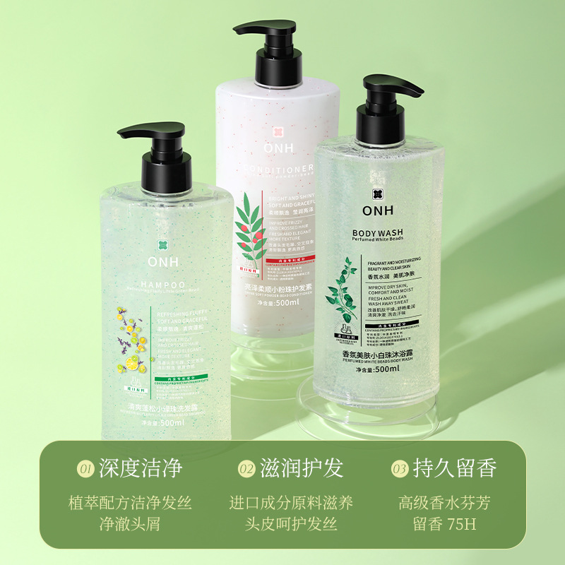 | nameOriginal | ONH Shampoo Conditioner Body Soap suit Oil Control Anti-dandruff Lasting Fragrance Shampoo genuine goods Factory Wholesale |