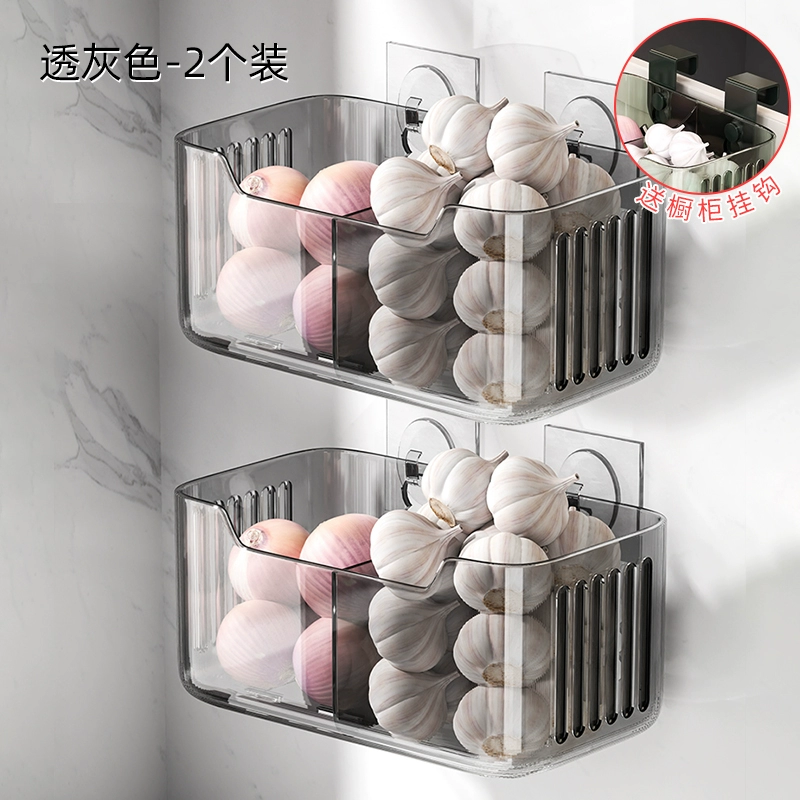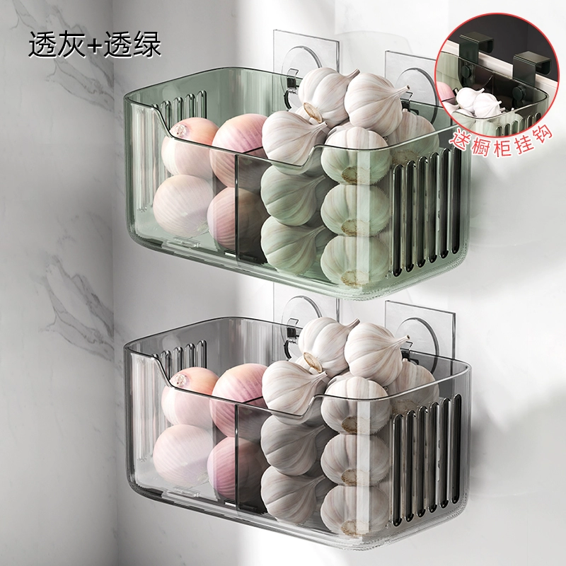 Onion, ginger and garlic storage box wall-mounted kitchen cabinet door storage rack spice rack divided vegetable basket punch-free storage basket