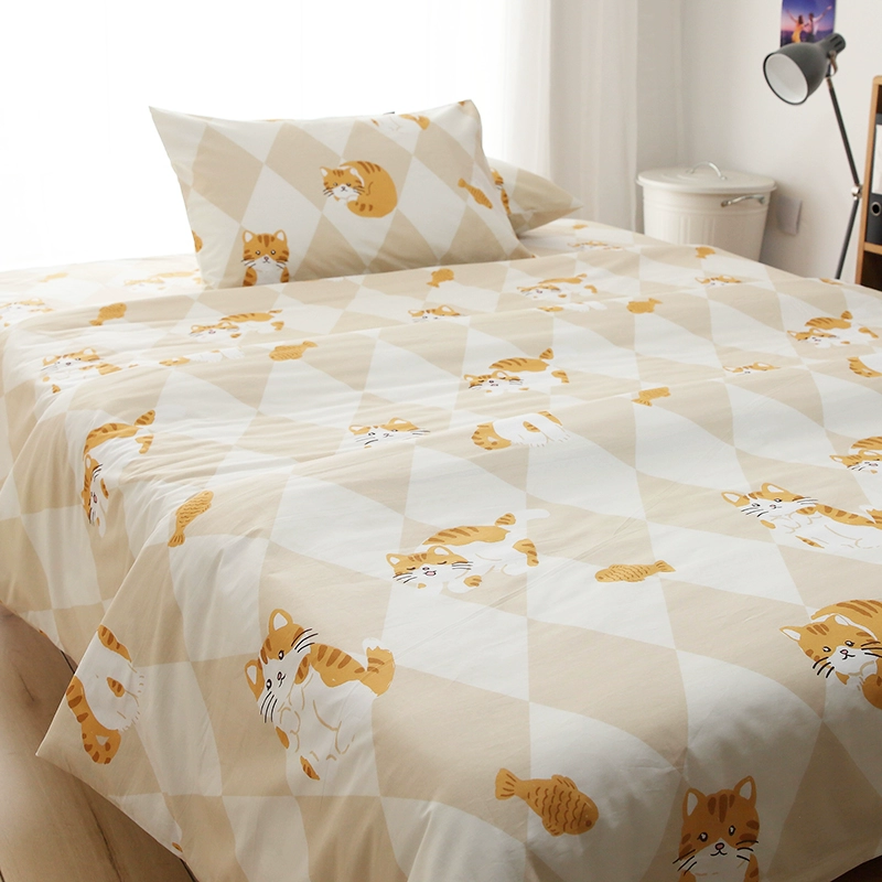 | nameOriginal | Online Cat Playing Cotton Sheets Cartoon Japanese Quilt Cover Pillowcase Pure Cotton Quilt Cover Sheet Cute Naughty Kitten Yellow Bottom |