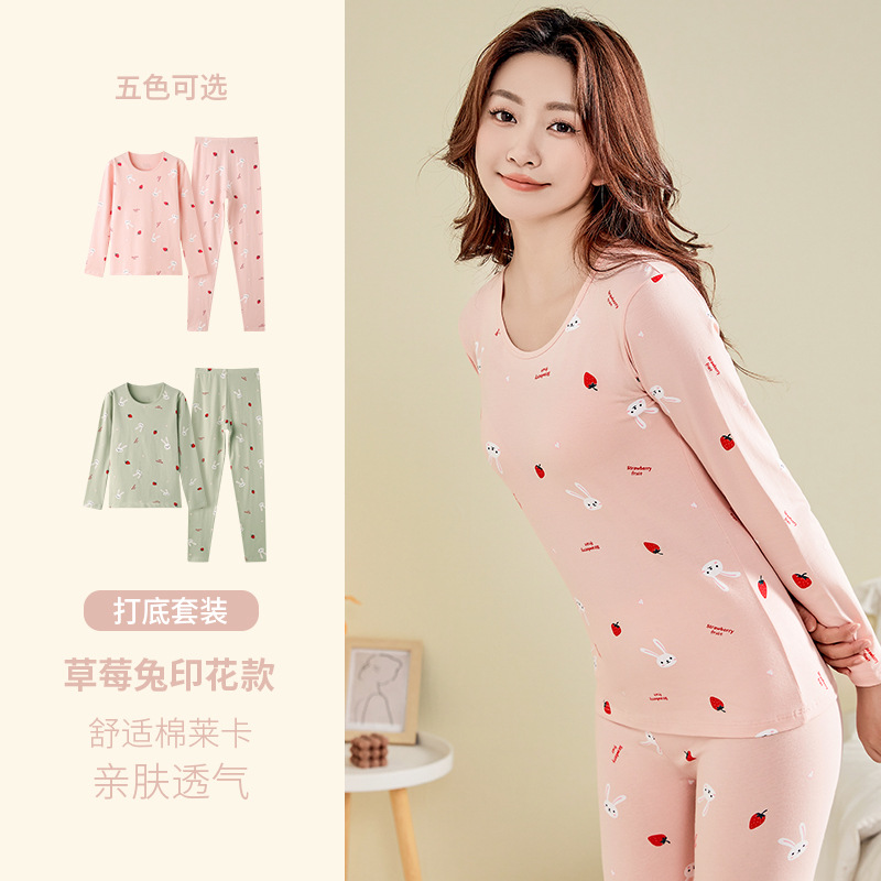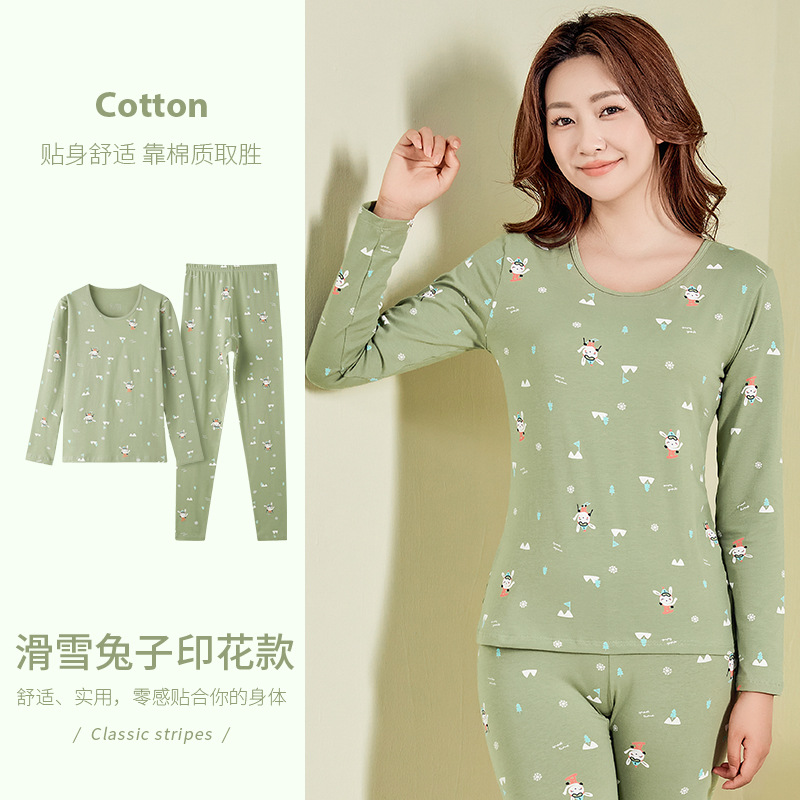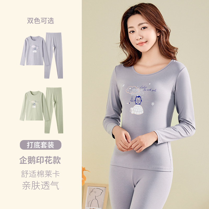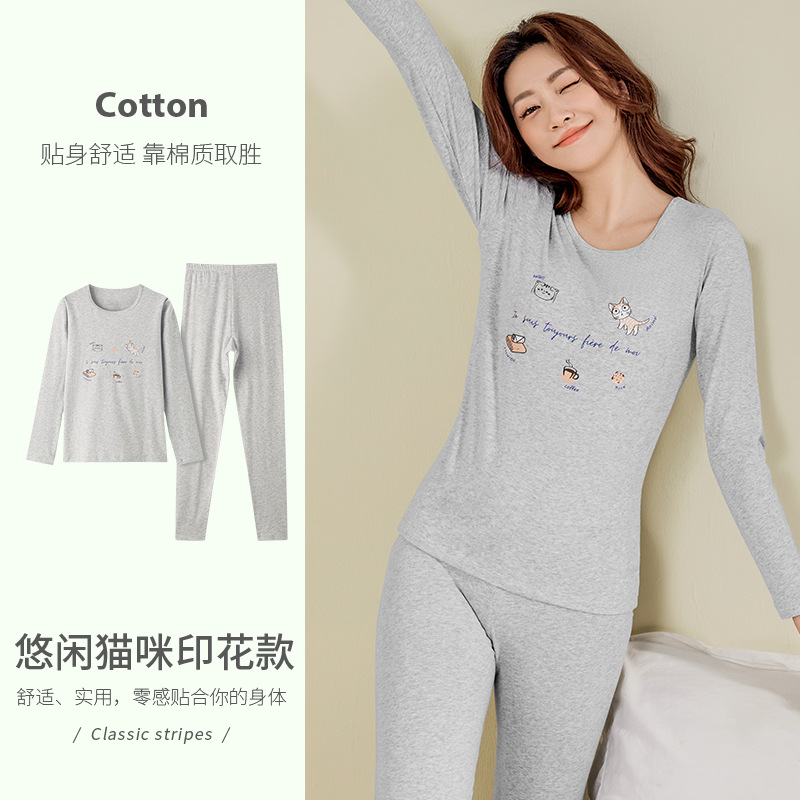 Online popular pure cotton women’s long johns suit thermal underwear printed suit thin long johns Spring and Autumn Winter