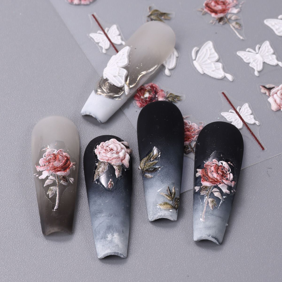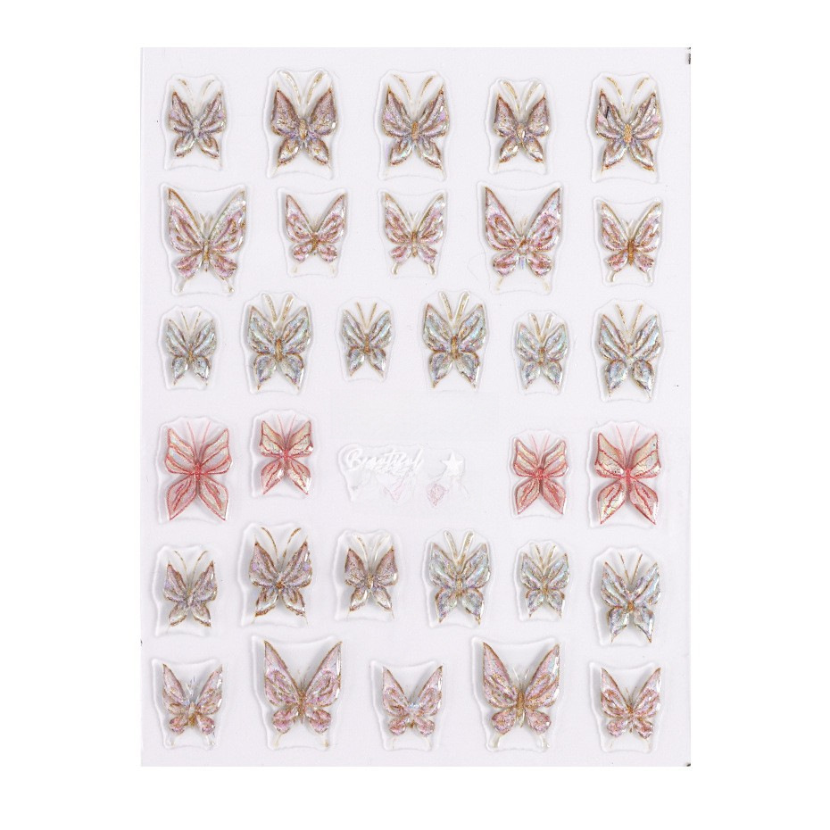 | nameOriginal | Online Red Butterfly nail stickers wholesale little red book laser colorful butterfly flower 5D relief three-dimensional adhesive stickers |