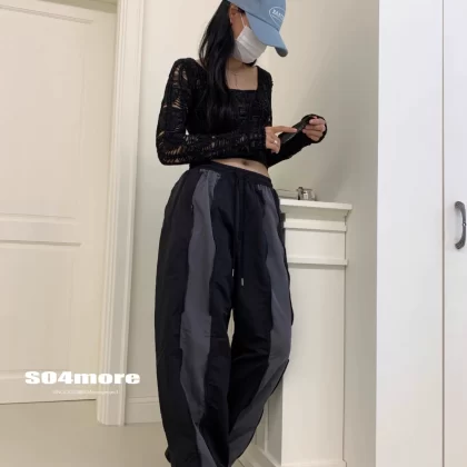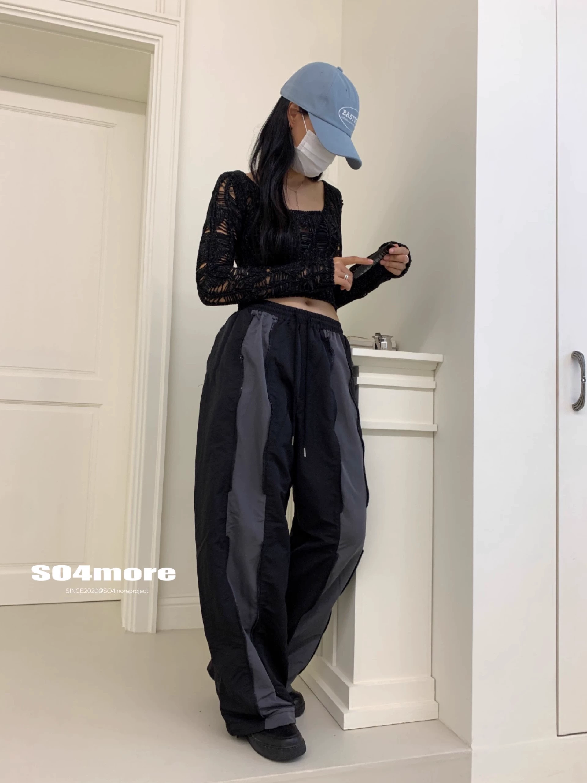 | nameOriginal | onNiche design color-blocked nylon loose casual pants |