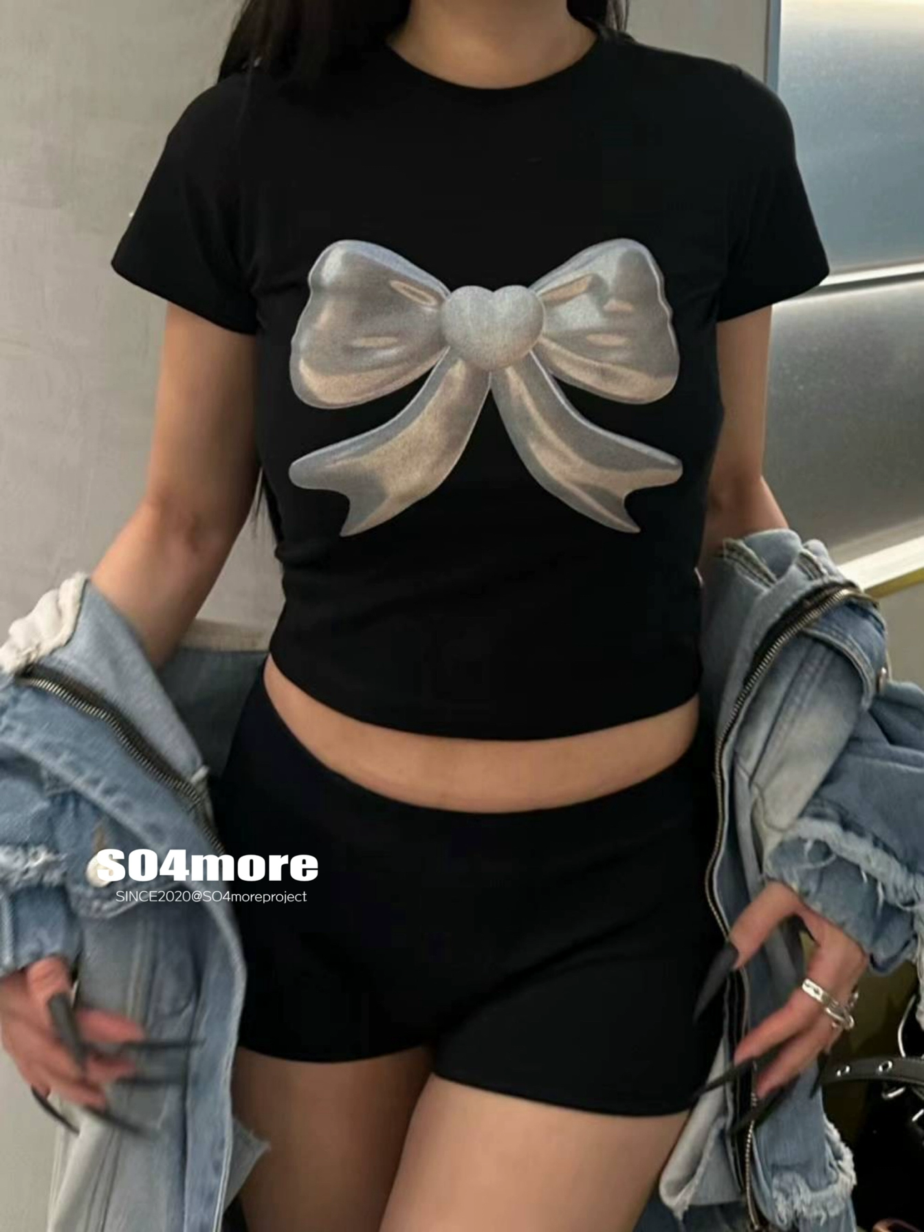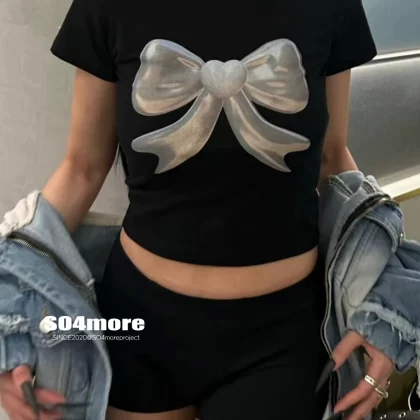 | nameOriginal | onNiche space silver short-sleeved top with bow |