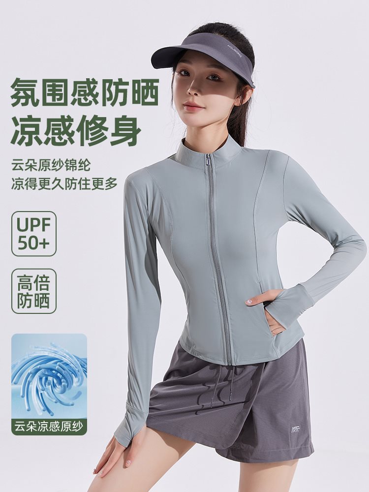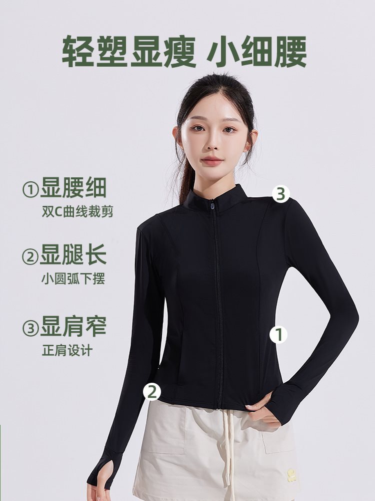 | nameOriginal | Ono with stand collar slim yoga sunscreen women's summer coat breathable 2024 new ice waist sunscreen |