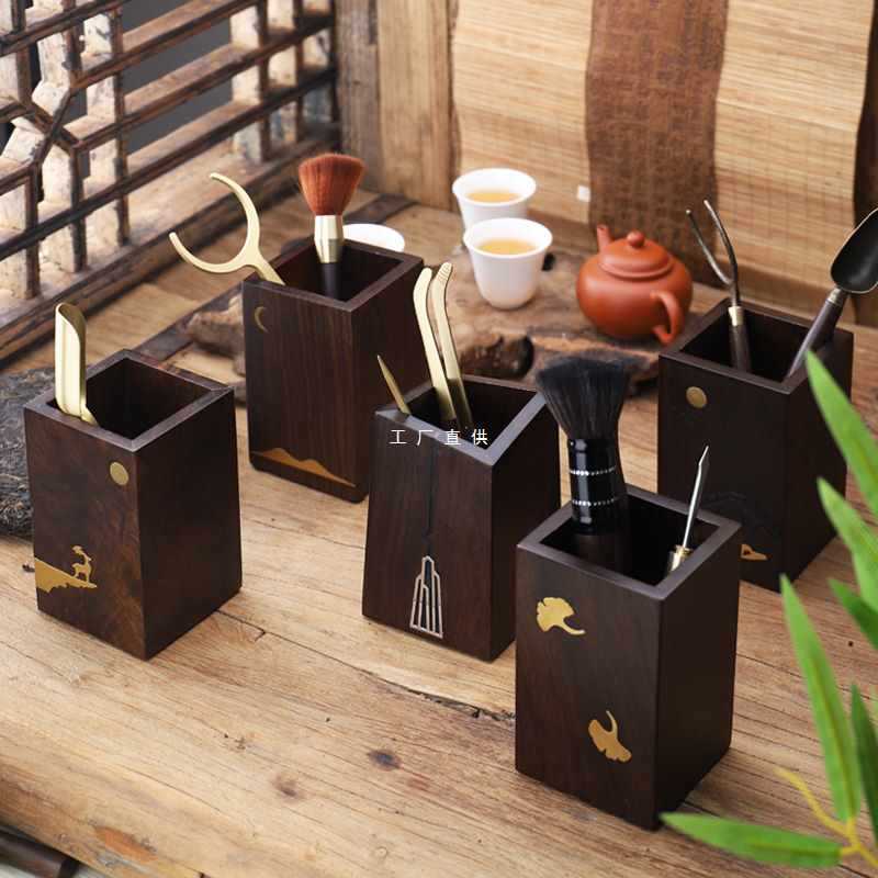 OP2B Saigu tea ceremony six gentlemen suit ebony solid wood kung fu tea set tea clip Tea Needle tea making tool accessories