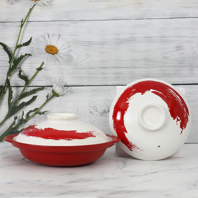 | nameOriginal | OP57 ceramic hotel red and white casserole red shallow pot commercial large capacity fish head pot open flame burning |