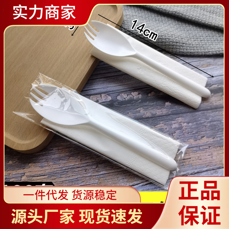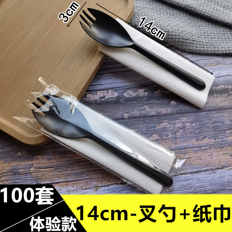OP57 disposable fork spoon paper towel long handle plastic cake individually packaged dessert ice cream take-out fruit fishing 1