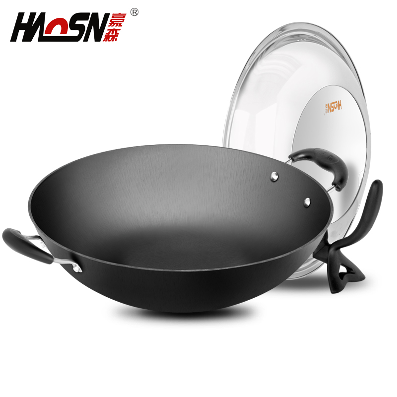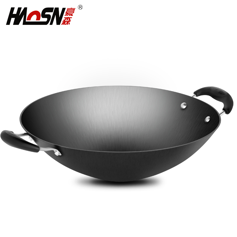 OP57 Pointed Wok Non-stick Pan Old-fashioned Household Multi-functional Binaural Raw Cast Iron Cookware for Gas Stove