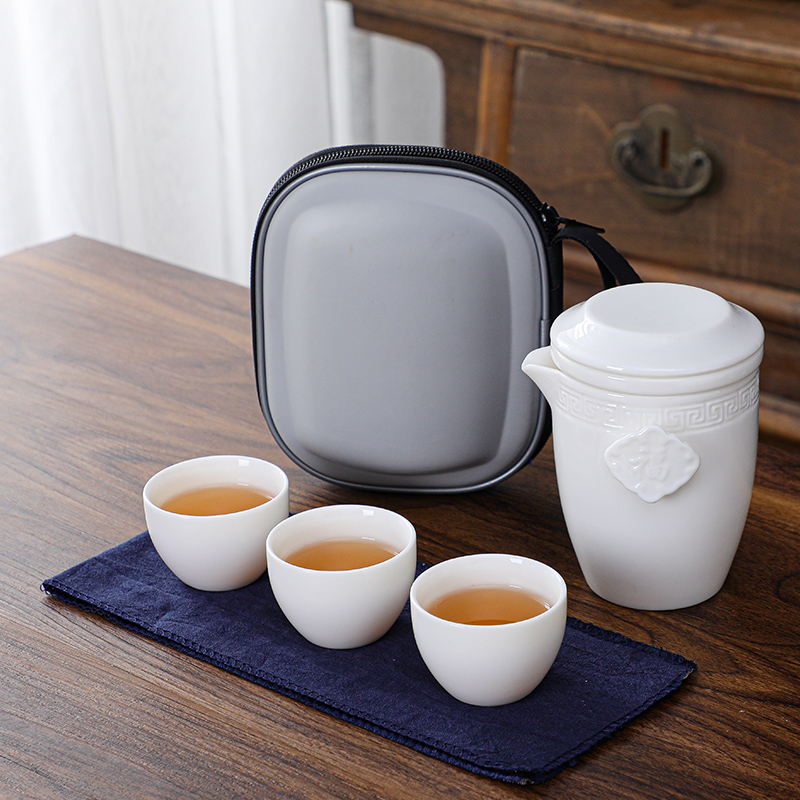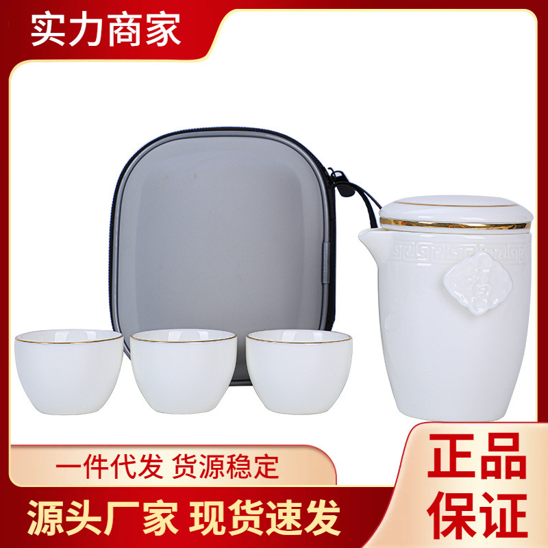 OP57 Travel Tea Set One Pot Five Cups Kung Fu Tea Portable Express Cup Set Ceramic Simple Hand Bag Outdoor