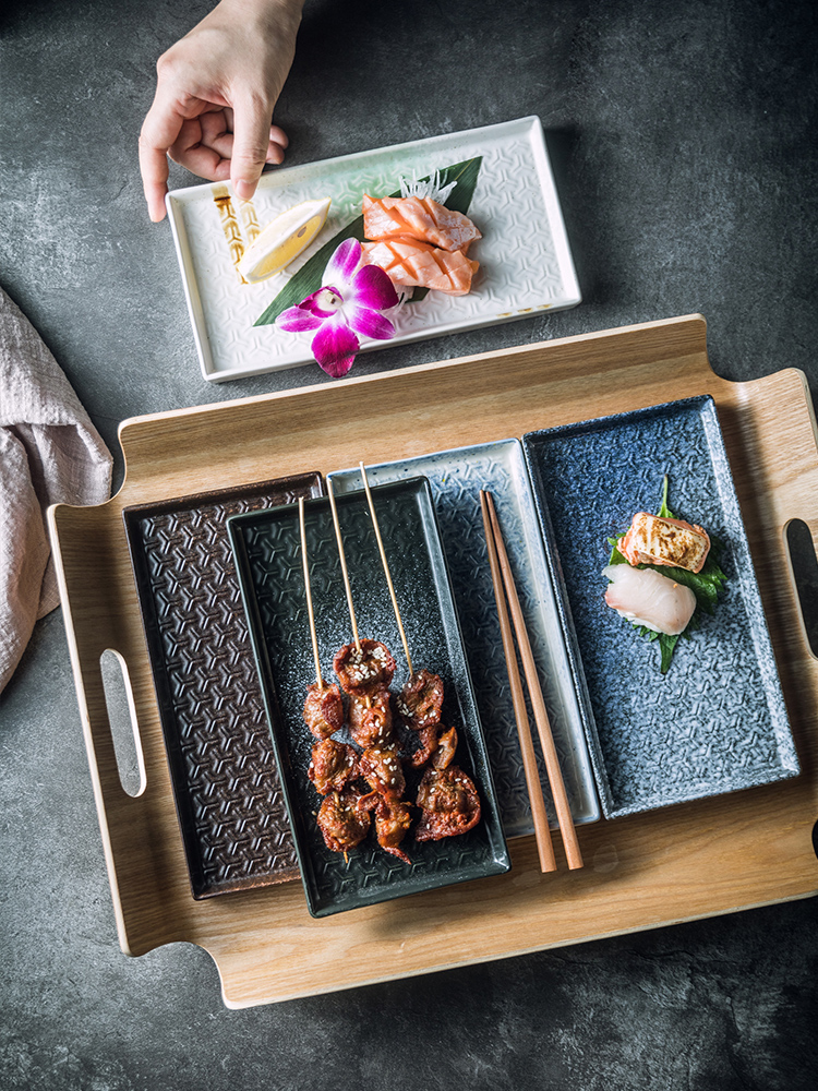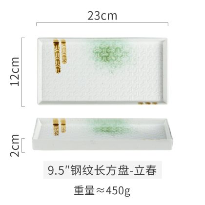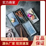 OP572023 New Ceramic Plate Dry Ice Salmon Sashimi Plate Sushi Plate Dumpling Plate Household Rectangular