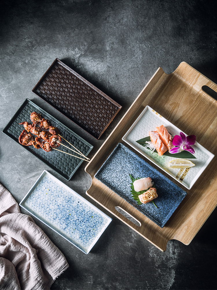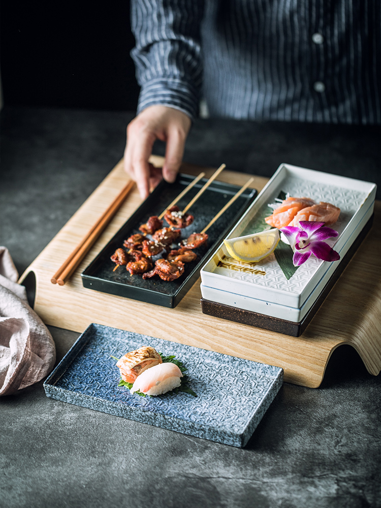 | nameOriginal | OP572023 New Ceramic Plate Dry Ice Salmon Sashimi Plate Sushi Plate Dumpling Plate Household Rectangular |