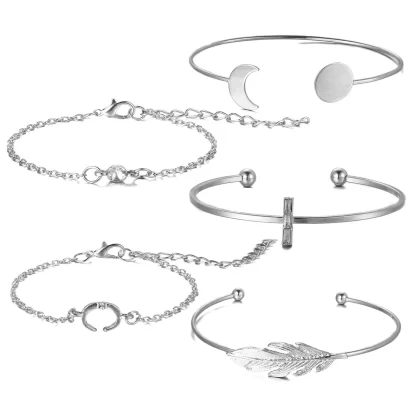 | nameOriginal | Open bracelet set with rhinestones, feathers, round open bracelet, leaves, sun and moon bracelet set |