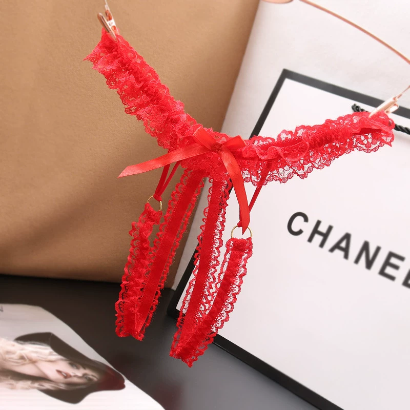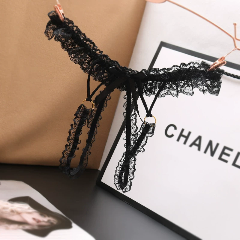| nameOriginal | Open crotch women's underwear low-waist sexy slim thong sexy lace European and American light luxury style metal ring briefs |