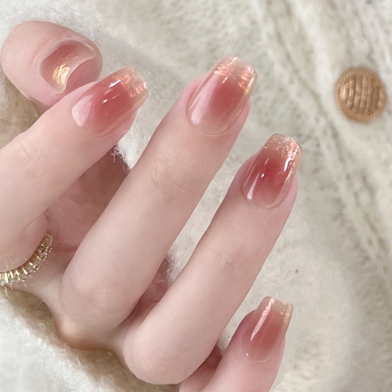 Open nail wear manicure sunset afterglow blush manicure new non-hurt nail wear manicure finished nail piece