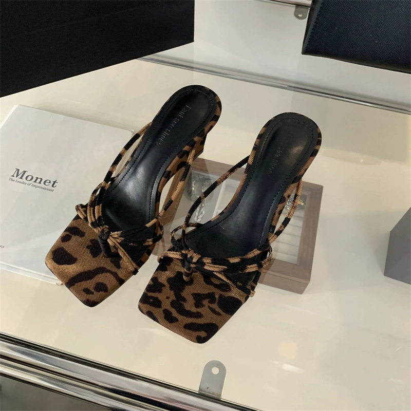 French leopard print flip flops