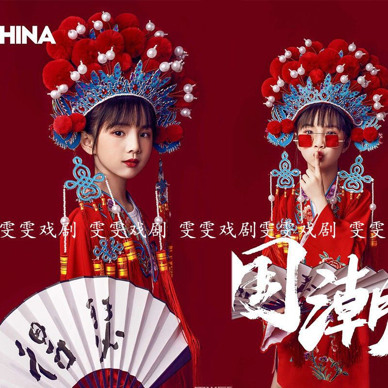 | nameOriginal | Opera headdress children's studio theme shooting small Hua Dan pompom phoenix crown Beijing opera wind phoenix crown national tide a generation of hair |