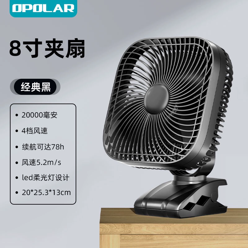 | nameOriginal | OPOLAR small fan silent office desktop portable student dormitory small bed fan outdoor camping spray shaking head timer clip fan long life high wind usb rechargeable fan |