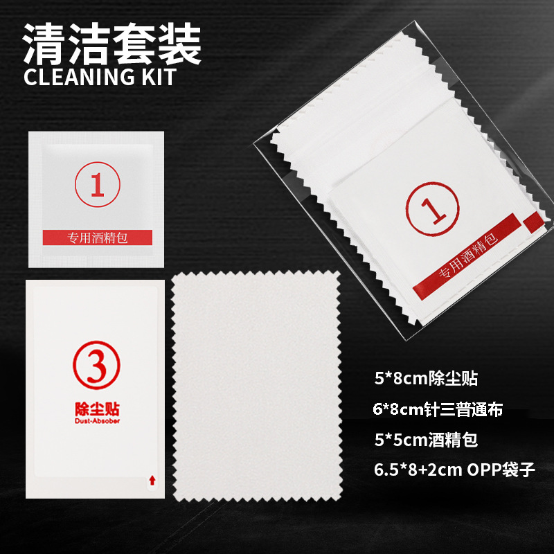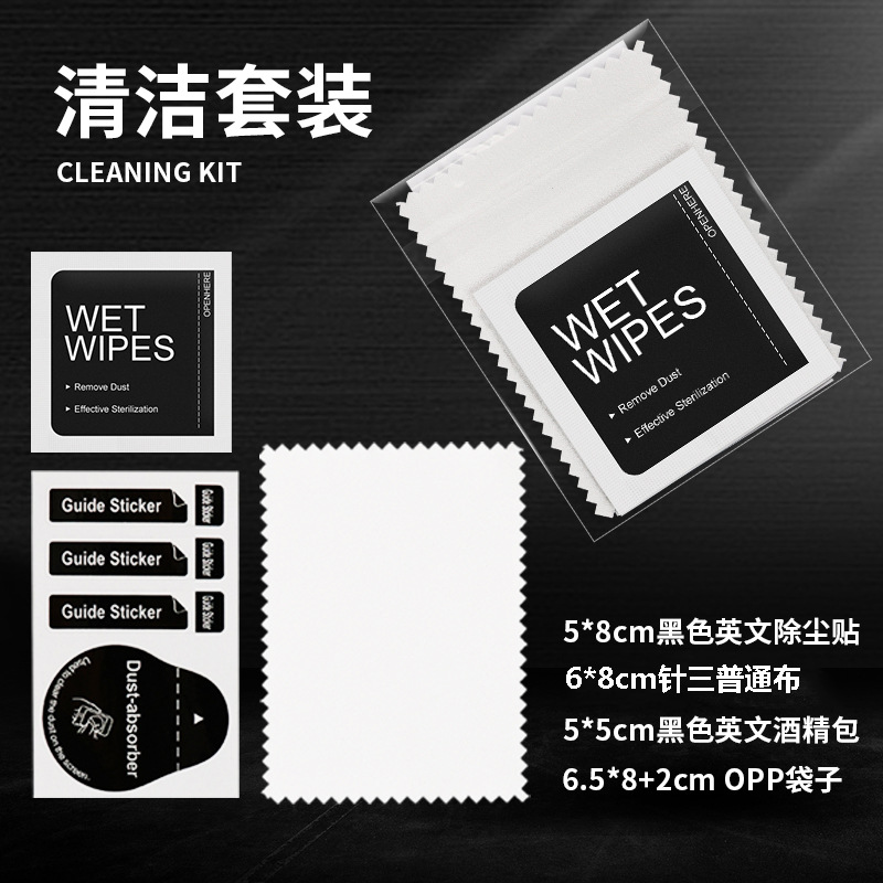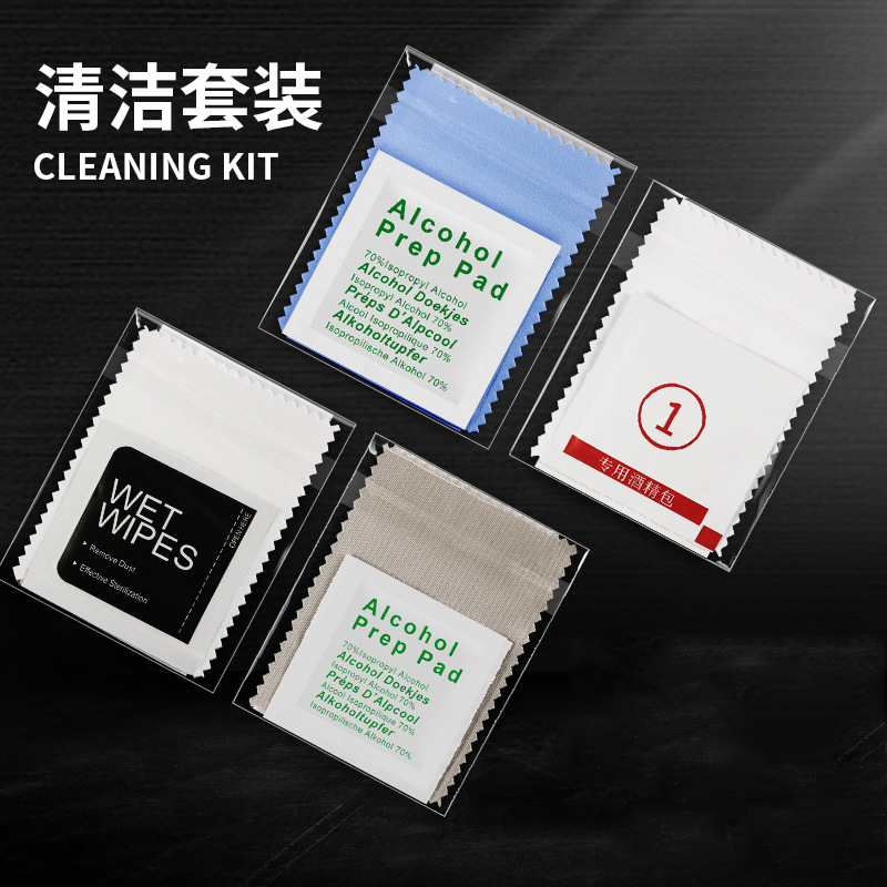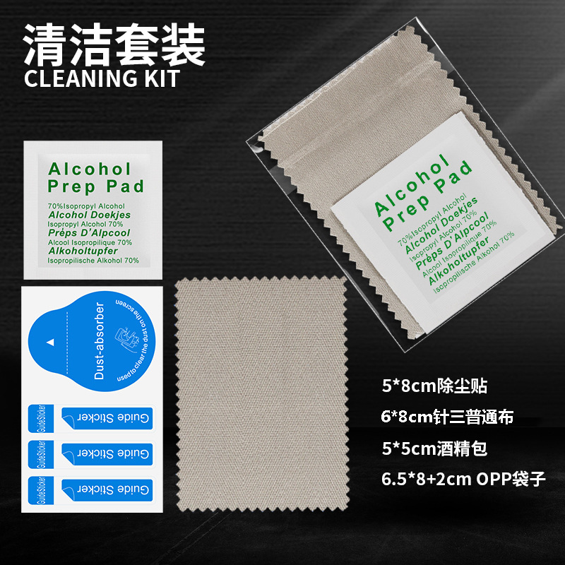 | nameOriginal | Opp bag cleaning set mobile phone film auxiliary tool alcohol bag three-piece dust removal paste wiping cloth set |