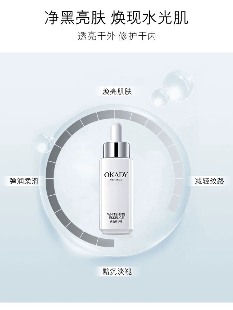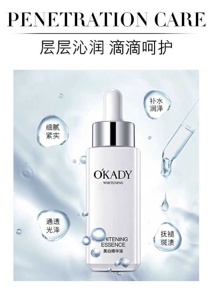 | nameOriginal | Oppe Whitening Essence nourishes, hydrates, locks moisture, softens and fades fine lines and dry lines, brightens skin, fades spots and removes yellowish air. |