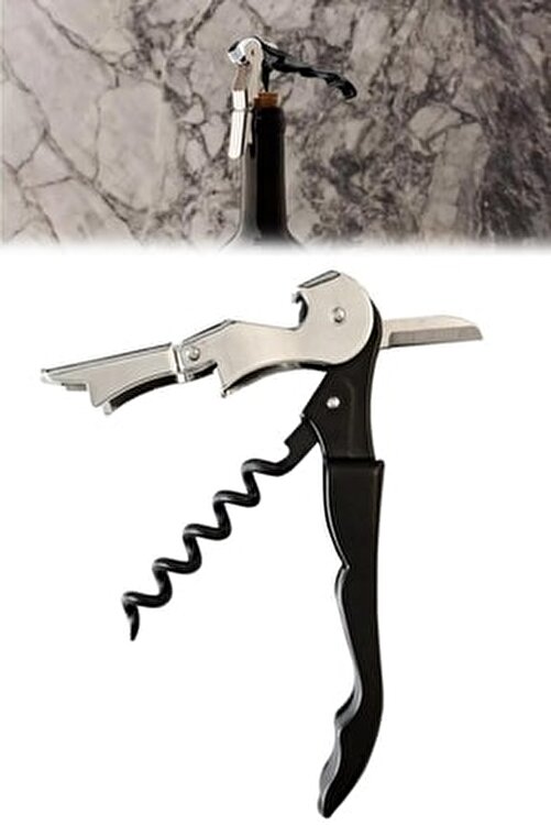 Corkscrew Practical Rugged Waiter Type Opener And Cutter The foil cutter combines the functions of corkscrew and bottle opener. The functional stainless steel blade has an ergonomic handle and a needle with a hardened, beveled and non-slip coating. This two-hinged corkscrew makes it easy to remove the cork from a wine bottle in two stages. The corkscrew includes a small knife for cutting the packaging on a wine bottle. The double arm has a flexible hinge that allows the cork to rotate and lift with ease. This waiter knife that removes mushrooms and foils and opens bottles with ease is the perfect tool for the waiter serving wine. COLOR: BLACK PACKAGE CONTENT: 1PCS Corkscrew Practical Sturdy Waiter Type Opener Cutter