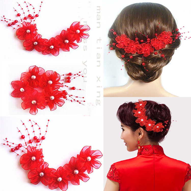 | nameOriginal | OQ5M bridal headdress flower Red children's performance hair accessories updo wedding small flower Pearl starry pearl hair accessories |