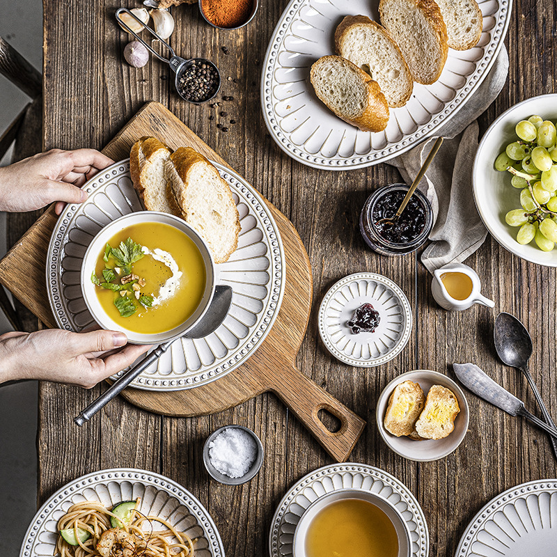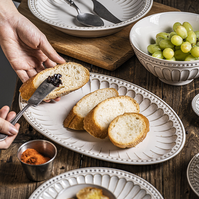 | nameOriginal | OQ5M wholesale cherry blossom vintage embossed ceramic suit household dinner plate dinner bowl pasta plate soup bowl bead point |