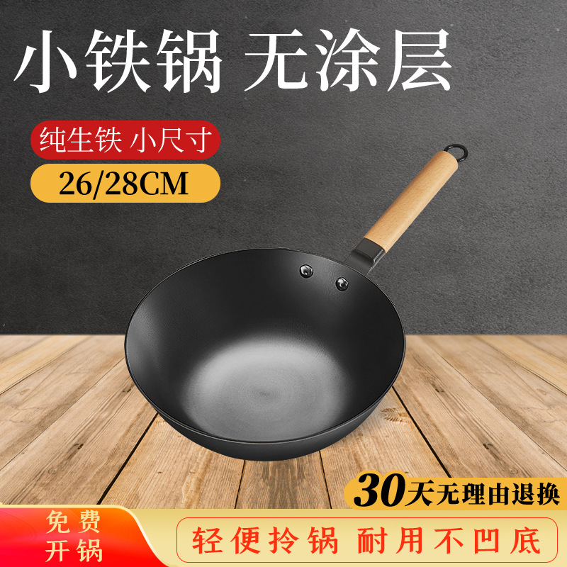 | nameOriginal | OQ5M wholesale non-coated lightweight small iron pot small size wok for one person household mini cast iron pot flat bottom burning |