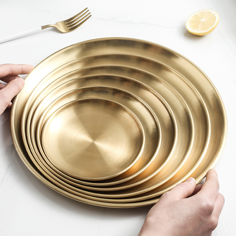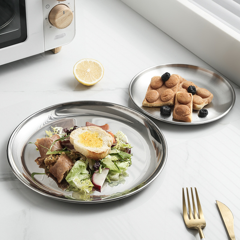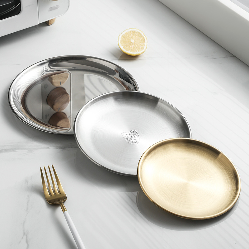 OQ5M wholesale stainless steel plate 304 round shallow plate flat Korean style pickle dish Korean style barbecue shop tableware dish