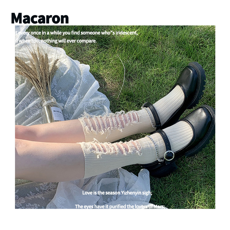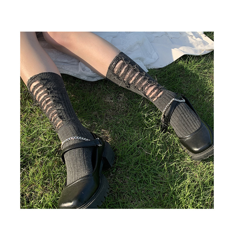 | nameOriginal | OQ5MMM6 new ripped mid-calf length socks female Magila dark destruction style trendy personalized beggar socks |