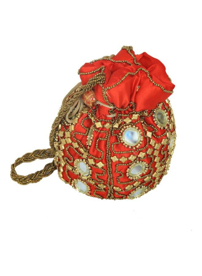 | nameOriginal | Ethnic Mirror Work Rajasthani Potli Bag Orange/Gold |