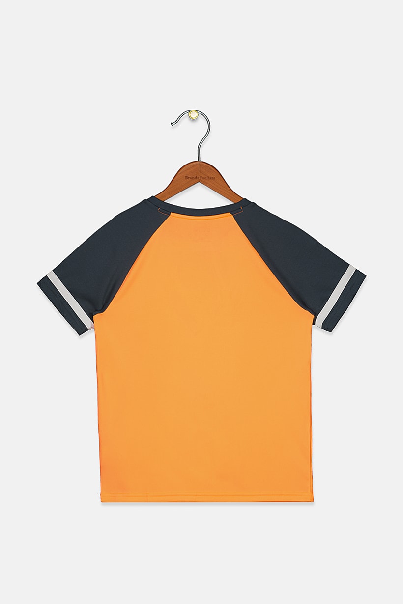 Bottom Hem : Straight, Care : Machine washable, Ideal For : Boys, Sleeve Length : Long Sleeve, Type of Sport : Outdoors, Types of Hem : Straight hem, Types of Neckline & Collar : Crew neckline, Types of Sleeve : Short sleeve, Disclaimer : Product color may slightly vary due to photographic lighting sources or your monitor settings., Fabrics : 100% Cotton, Occasion : Sport, Pattern & Print : Brand Logo, Sportswear Type : T-Shirt, Types of Closures : Pullover, Color Family : Orange,