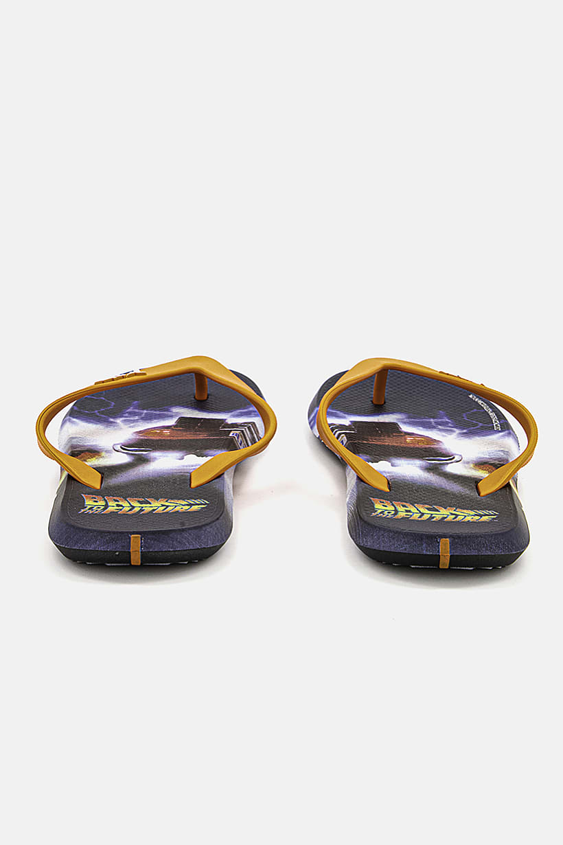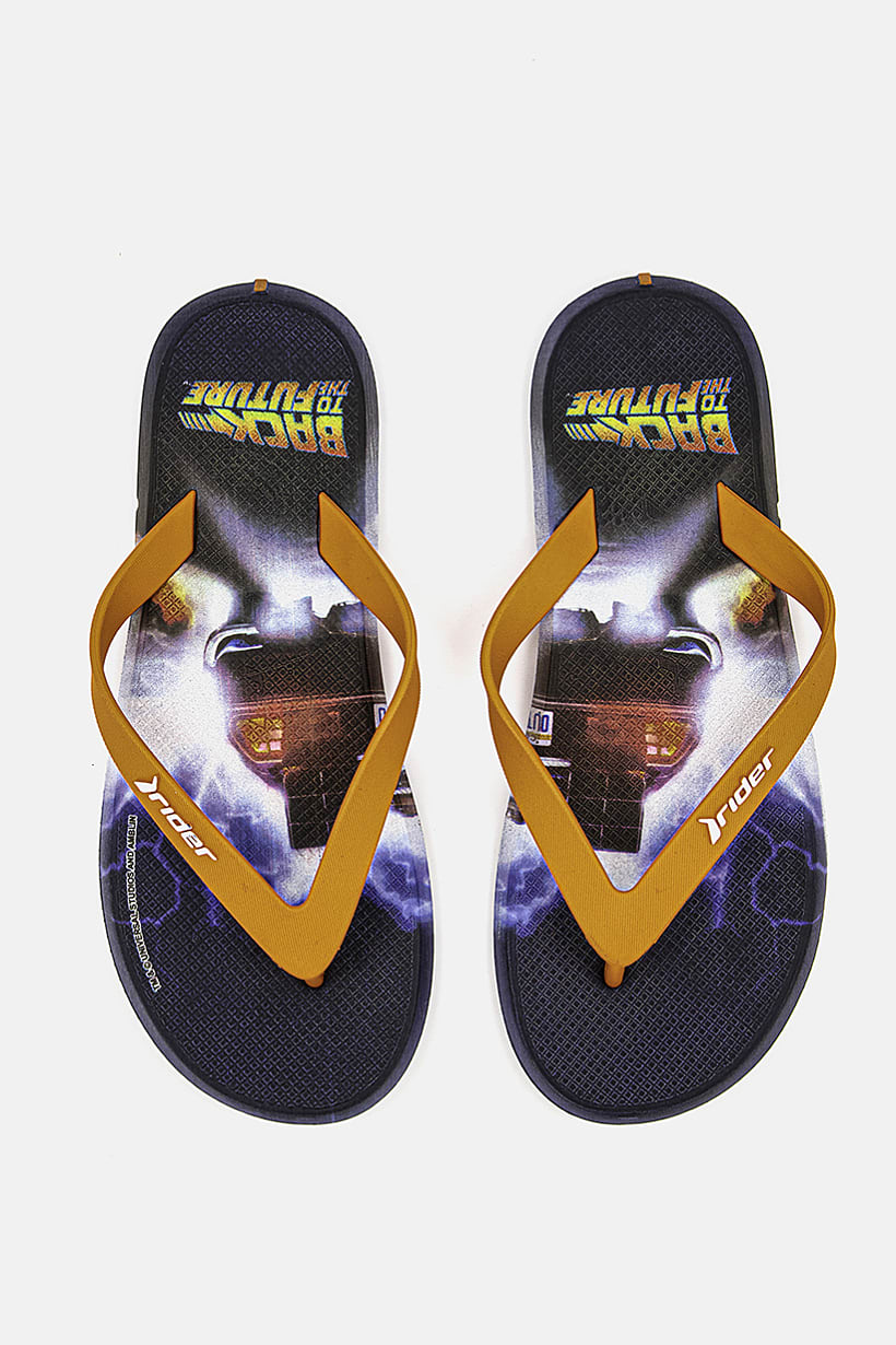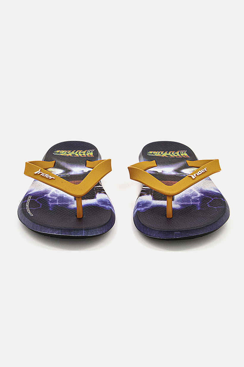 | sub_Categories | Shoes, Slides & Slippers, men graphic print slip on slippers orange and navy |
