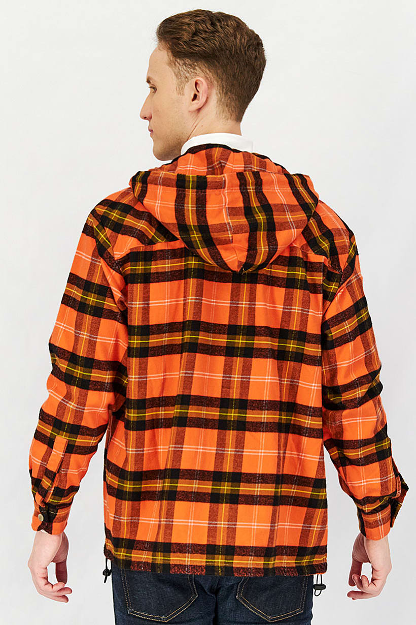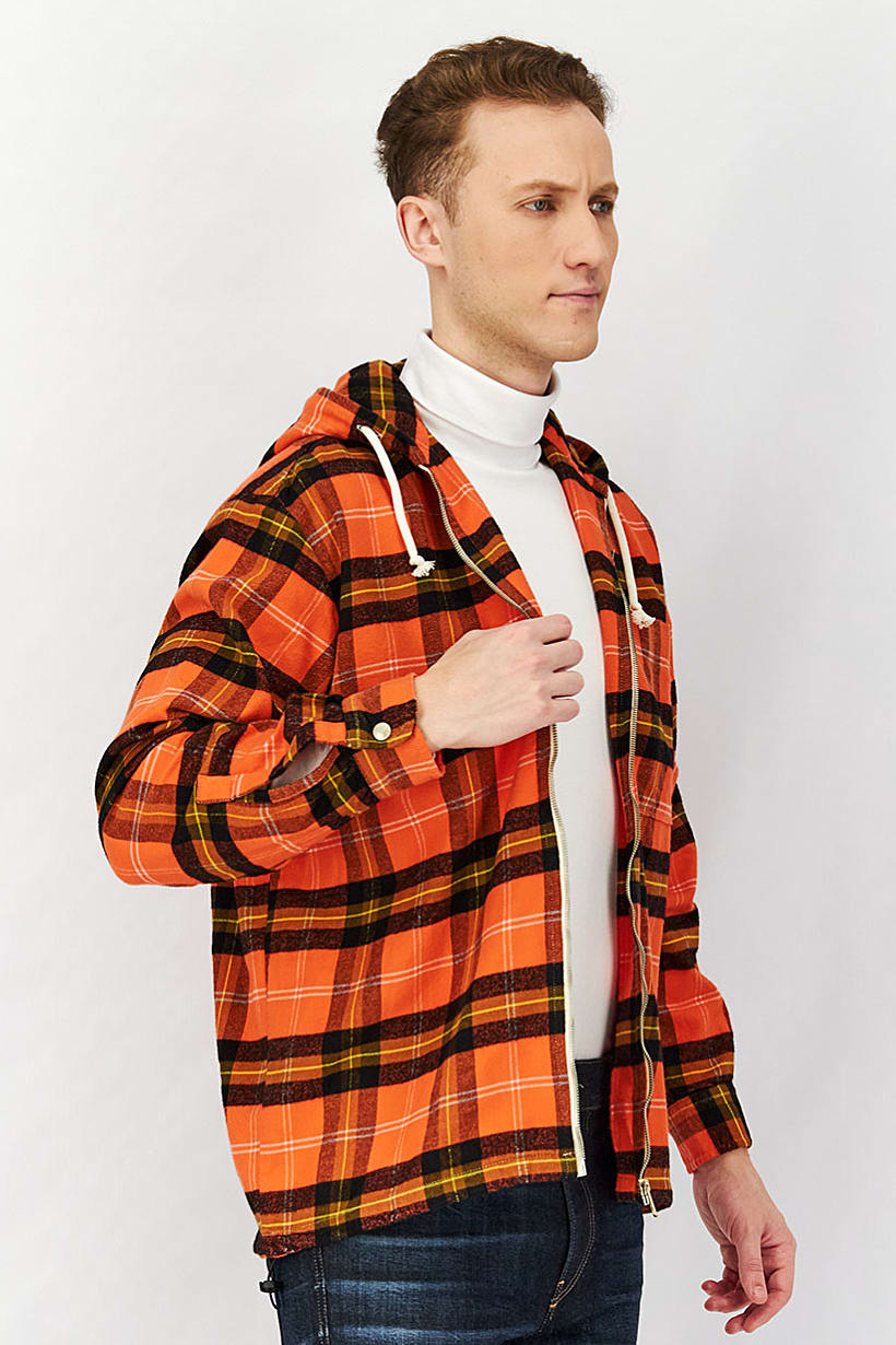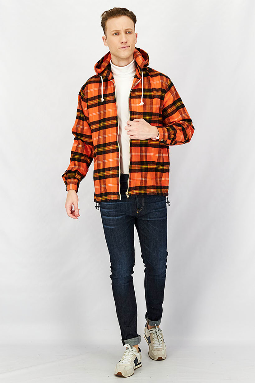Size shown : International, Sleeve Length : Long Sleeve, Sweatshirt Style : Full Zip, Thickness : Medium, Types of Neckline & Collar : Hood with drawstrings, Types of Sleeve : Longsleeve, Disclaimer : Product color may slightly vary due to photographic lighting sources or your monitor settings., Fabrics : 100% Cotton, Pattern & Print : Checkered, Types of Closures : Zipper closure, Color Family : Orange,
