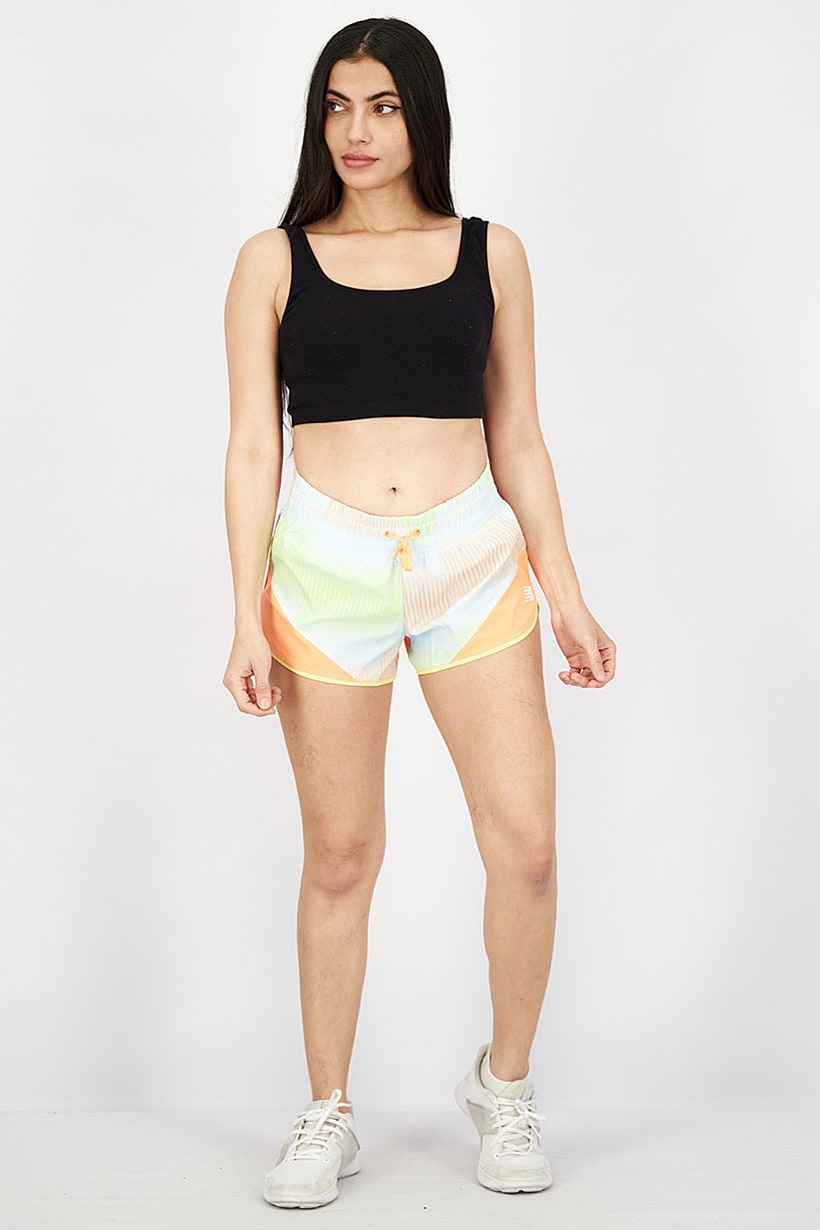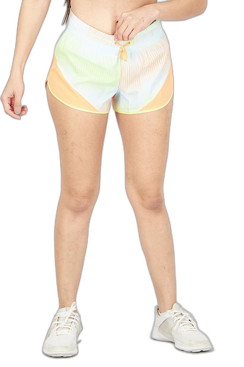 Bottom Hem : Straight, Care : Machine washable, Fit : Sportswear Fit, Ideal For : Women, Size shown : US, Thickness : Light, Type of Short : Sport short, Type of Sport : Outdoors, Types of Hem : Straight hem, Bottom Closure : Elastic waistband, Drawstring, Disclaimer : Product color may slightly vary due to photographic lighting sources or your monitor settings., Fabrics : 100% Polyester, Pattern & Print : Stripe, Sportswear Type : Shorts, Types of Closures : Drawstring, Color Family : Orange,