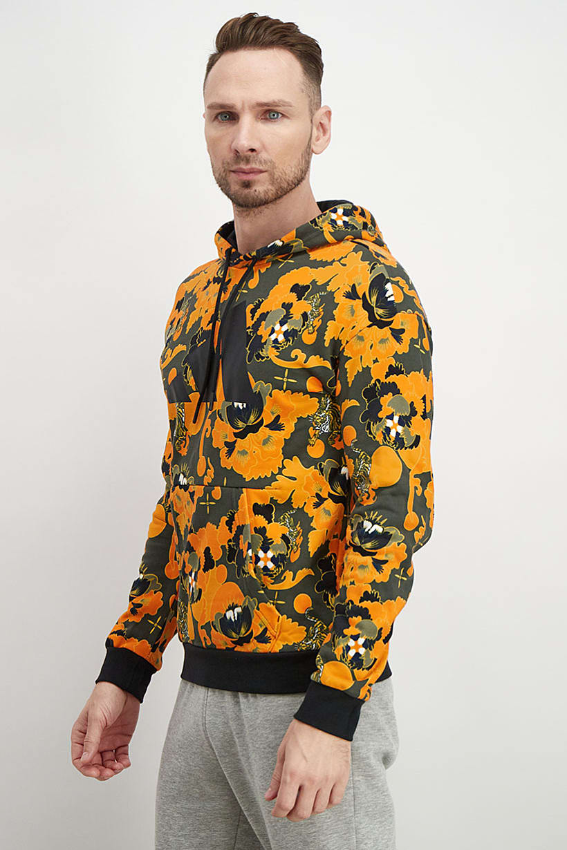 | nameOriginal | Men Sport Fit Floral Print Long Sleeve Hoodie, Orange |