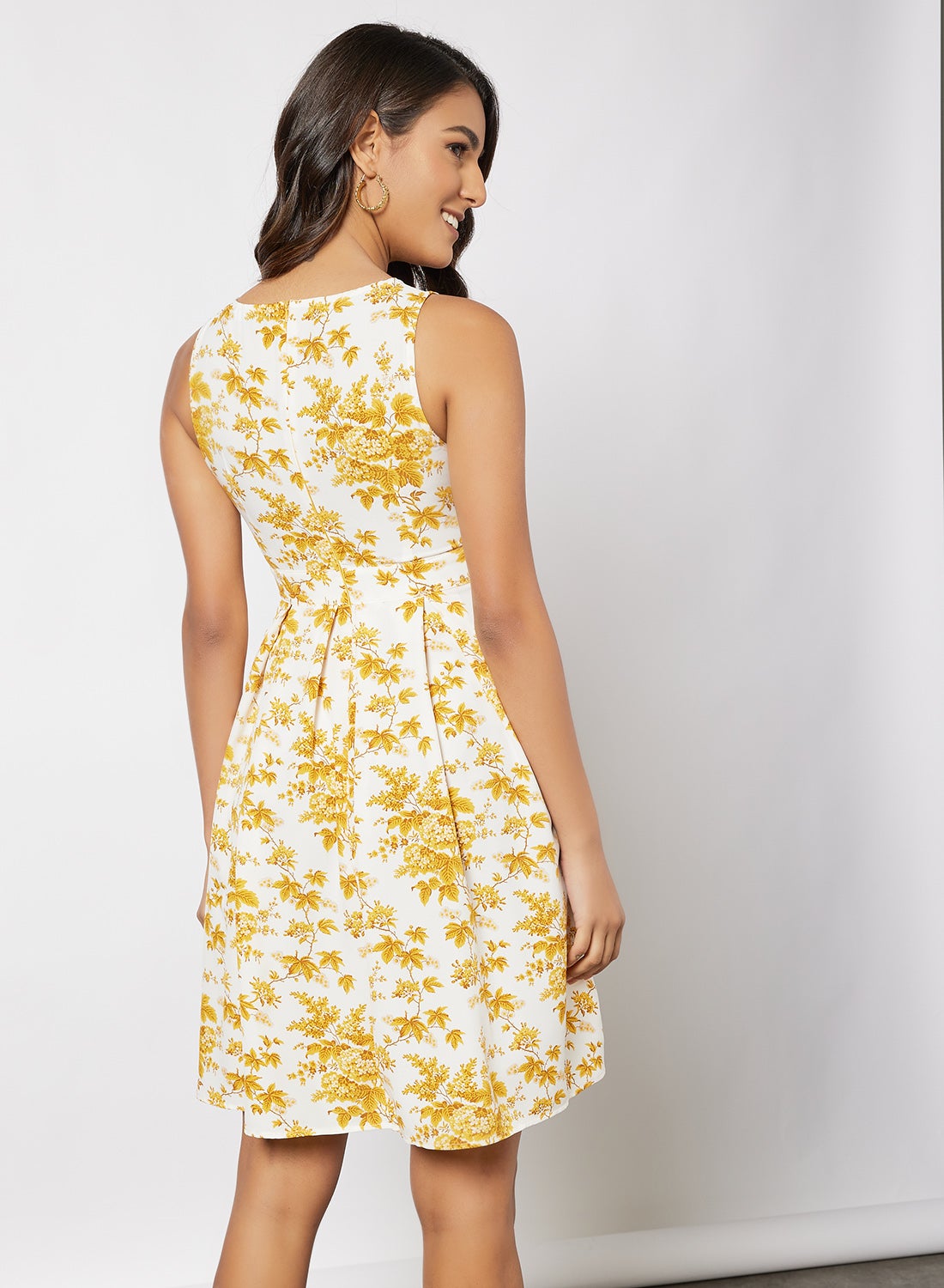 | nameOriginal | Casual Sleeveless Knee Length Dress With Round Neck Floral Printed Pattern Orange |