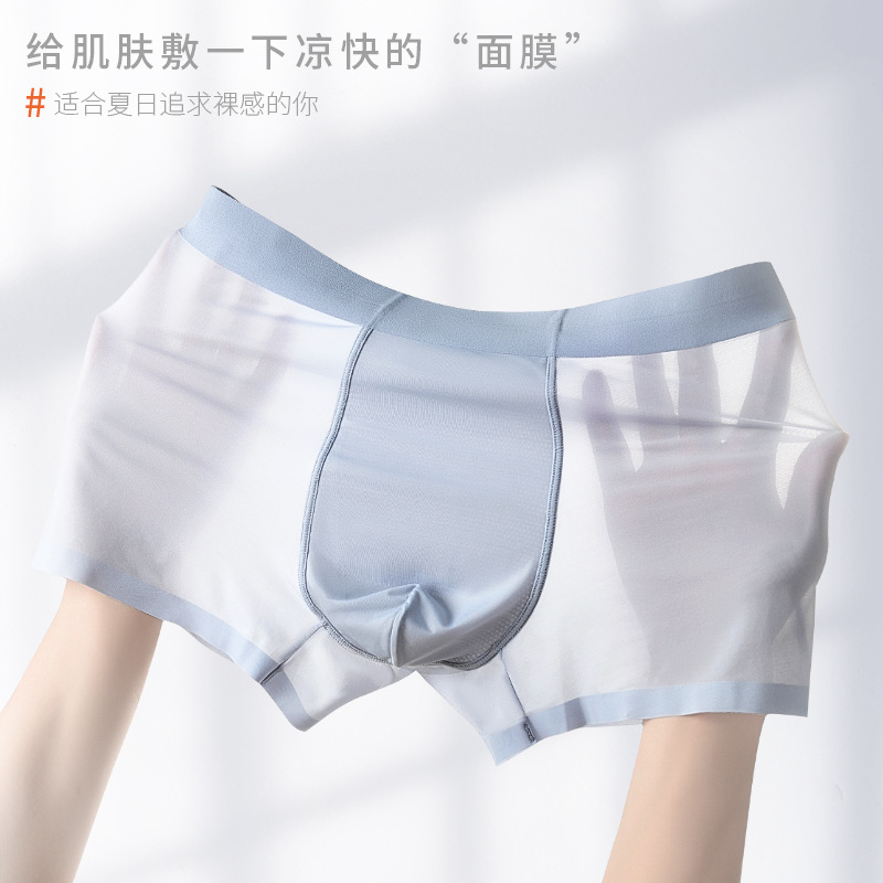 | nameOriginal | Orange inner banana convex Ice Silk men's underwear seamless naked feeling breathable antibacterial mesh inner file summer thin men's boxer shorts |