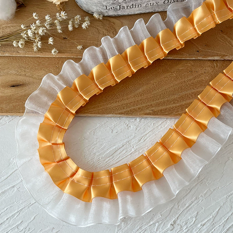 | nameOriginal | Orange lace accessories handmade diy decorative skirt hem orange clothes accessories pleated ruffles wide |