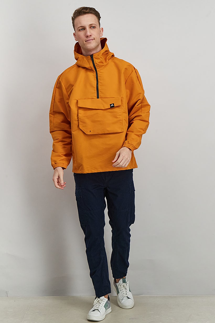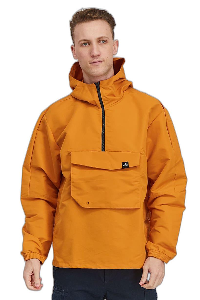 This product is easy to care for as it is machine washable. It has a sportswear fit and is available in US sizes. The jacket is lightweight and suitable for outdoor sports. Please note that the product color may vary slightly due to lighting or monitor settings. It is made of 100% recycled polyester and features the brand logo as a pattern and print. The jacket has a zipper closure and comes in an orange color. It is perfect for sports occasions.