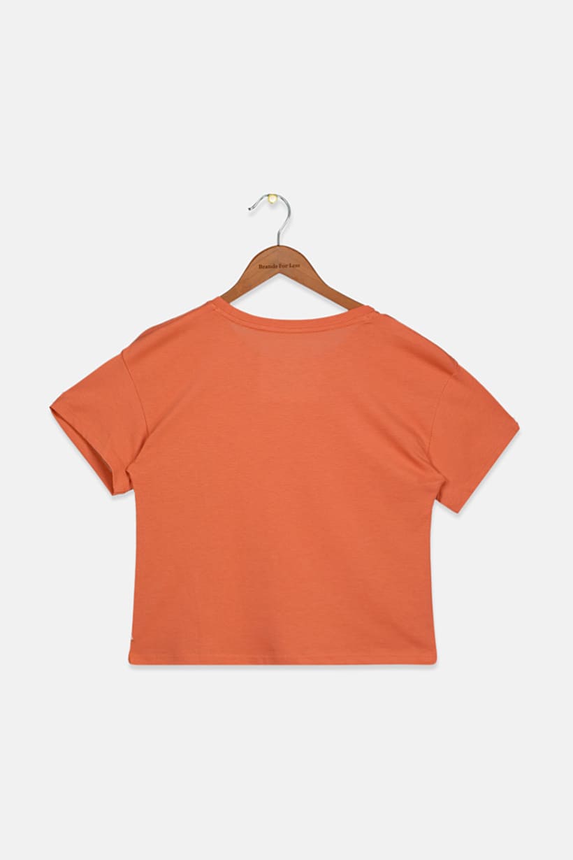 Care : Machine washable, Ideal For : Girls, Sleeve Length : Short Sleeve, Types of Hem : Straight hem, Types of Neckline & Collar : Round neckline, Types of Sleeve : Short sleeve, Disclaimer : Product color may slightly vary due to photographic lighting sources or your monitor settings., Fabrics : 60% Cotton, 40% Polyester, Occasion : Casual, Pattern & Print : Graphic print, Types of Closures : Pullover, Color Family : Orange,
