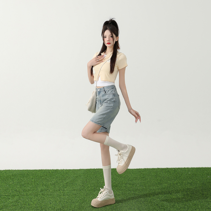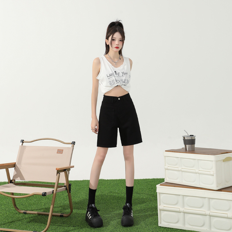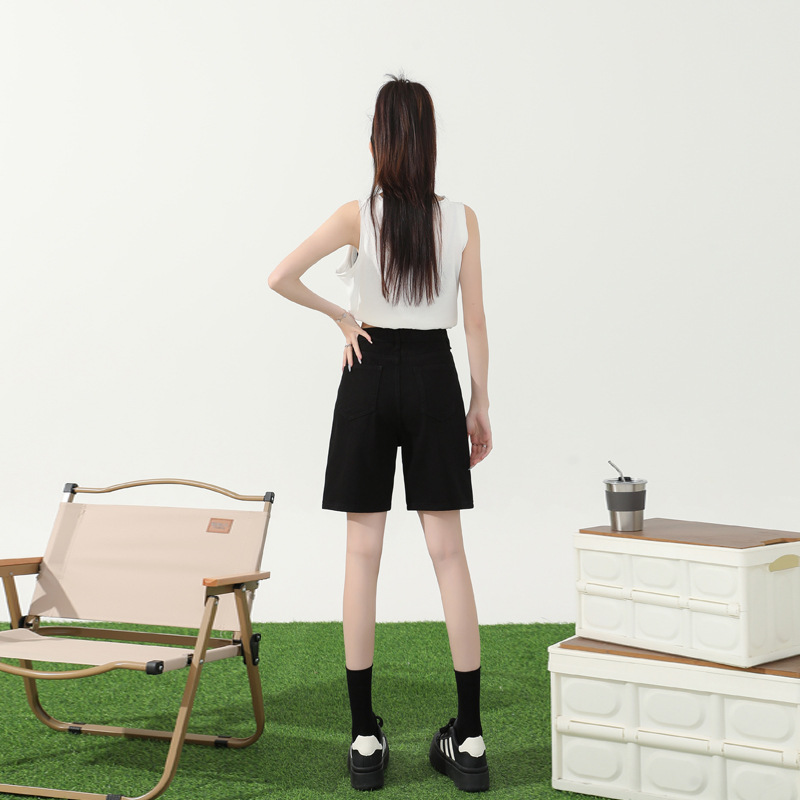 | nameOriginal | Orange silk women's clothing# retro high waist five Denim shorts women's 2024 summer new straight slim slim pants |
