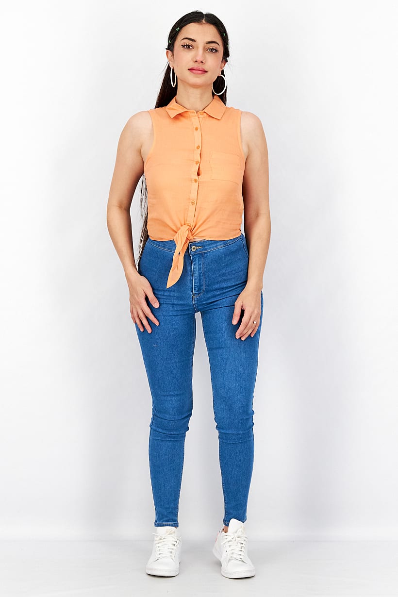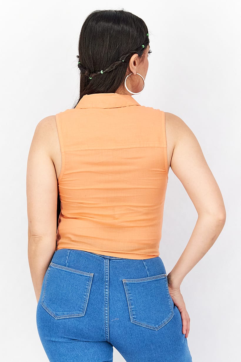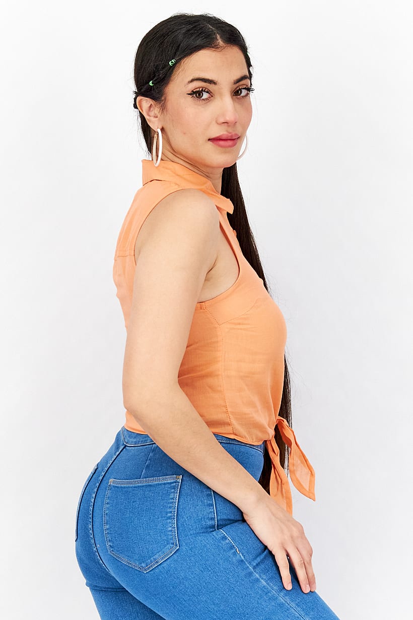 | nameOriginal | Women Spread Collar Sleeveless Solid Top, Orange |