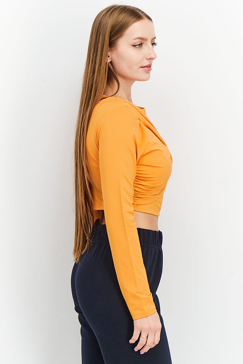 | sub_Categories | Women Clothing, Tops & Tees, women round neck long sleeve solid crop top orange |