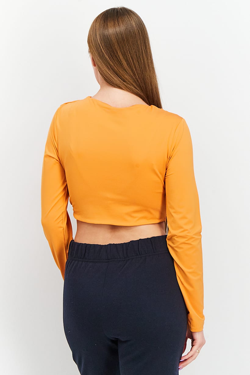 | nameOriginal | Women Round Neck Long Sleeve Solid Crop Top, Orange |