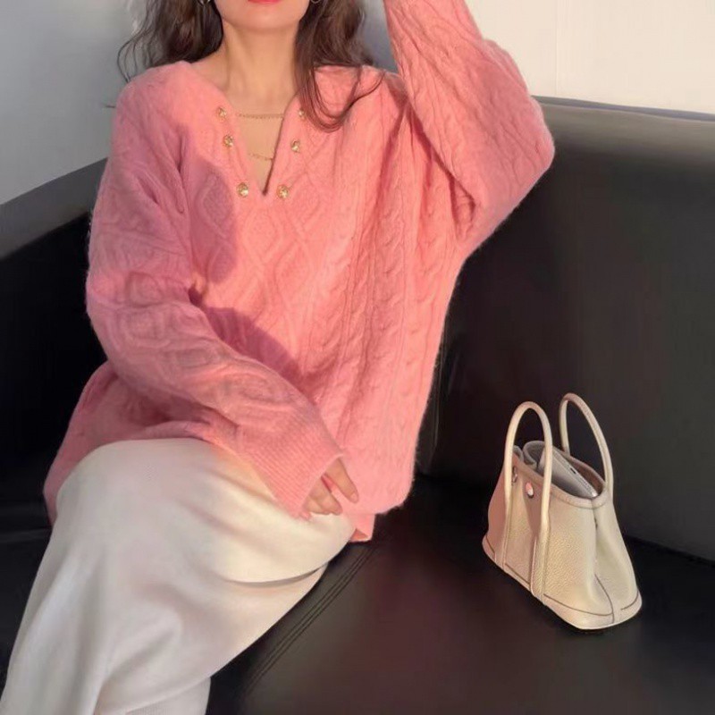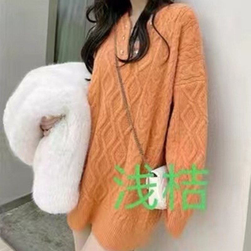 | nameOriginal | Orange V-neck twist sweater for women 2023 autumn and winter New elegant gentle pullover knitted top loose coat |