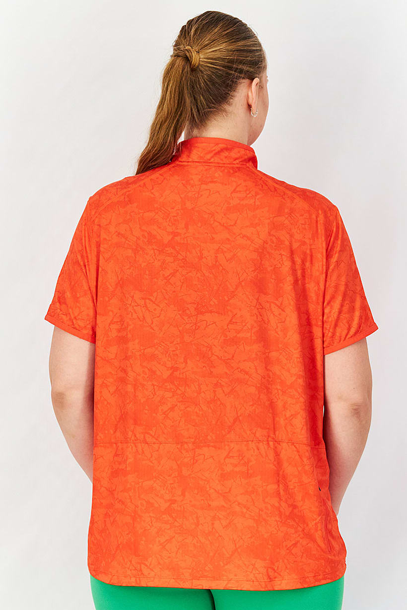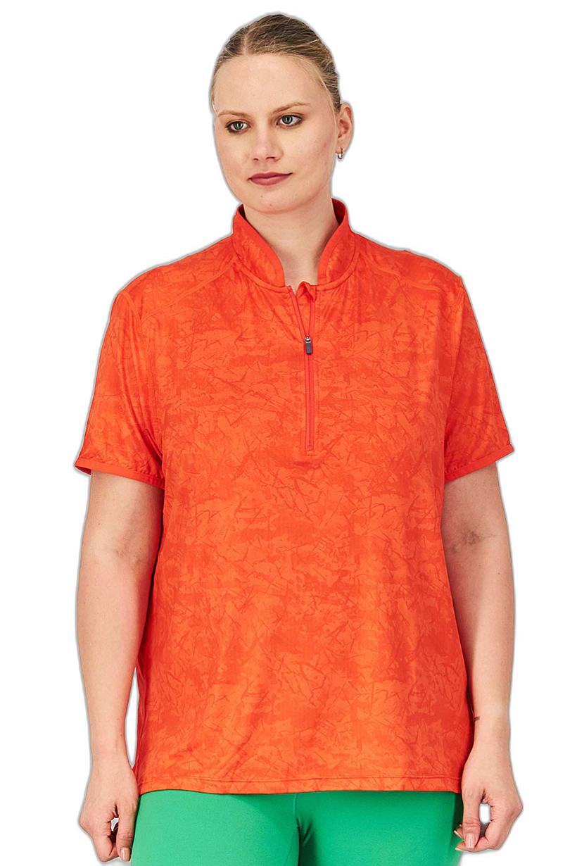 | descriptionOriginal | Care : Machine washable, Fit : Regular fit, Ideal For : Women, Sleeve Length : Short Sleeve, Types of Sleeve : Short sleeve, Fabrics : 100% Polyester, Occasion : Sport, Types of Closures : Zipper closure, Color Family : Orange, Types of Neckline & Collar : Band collar, |
