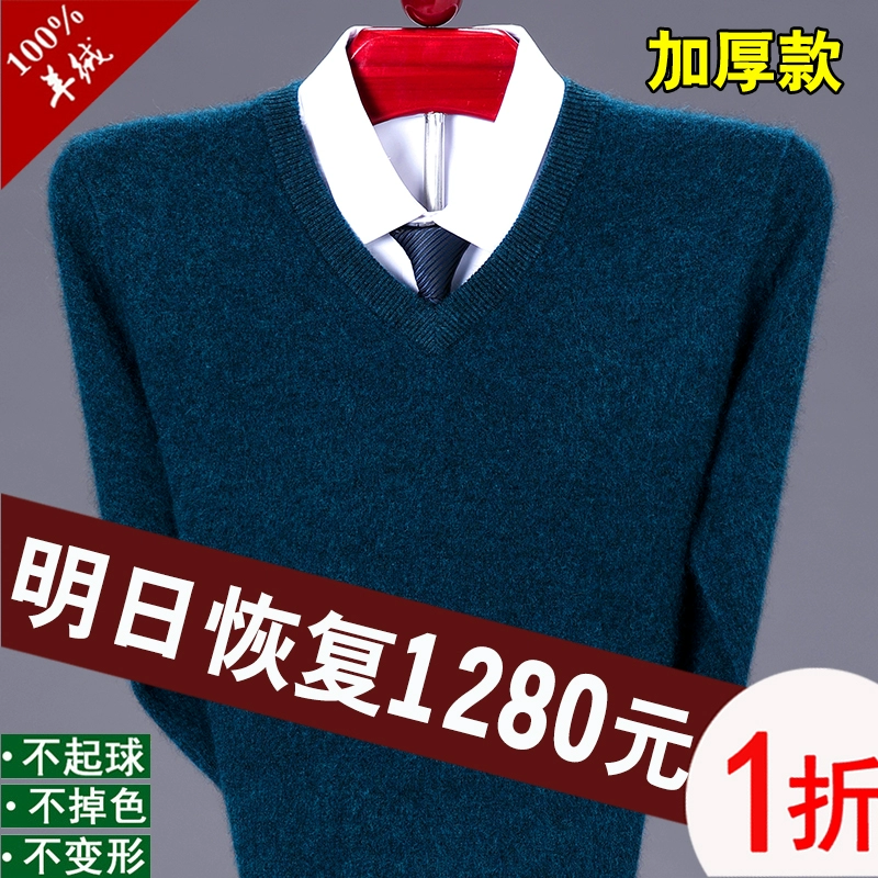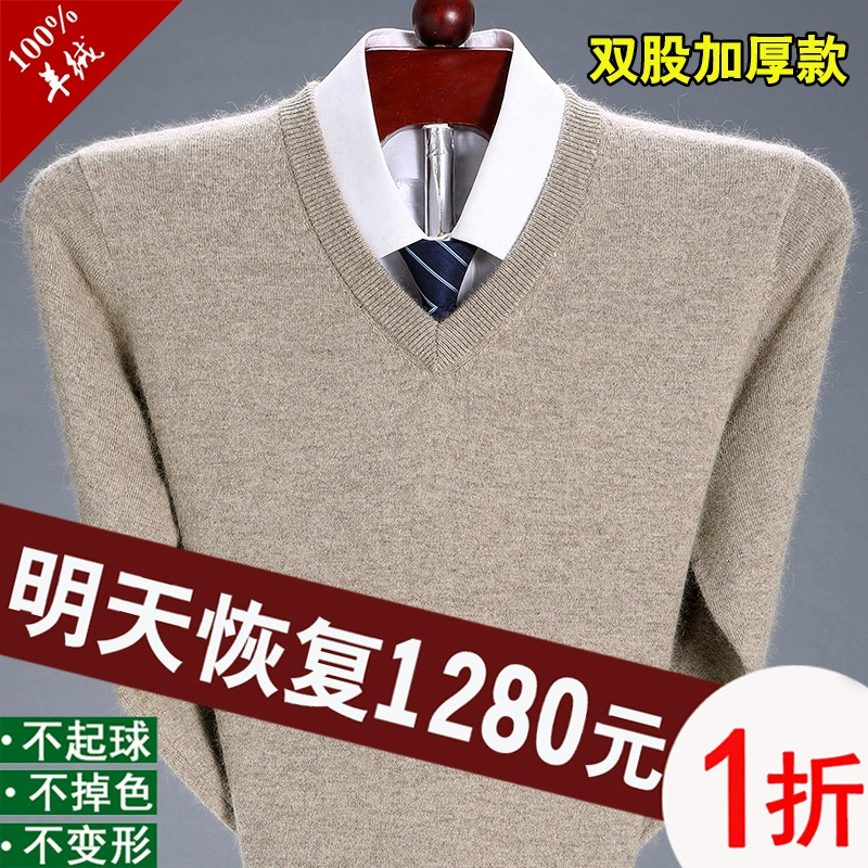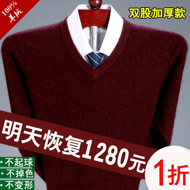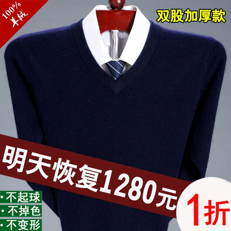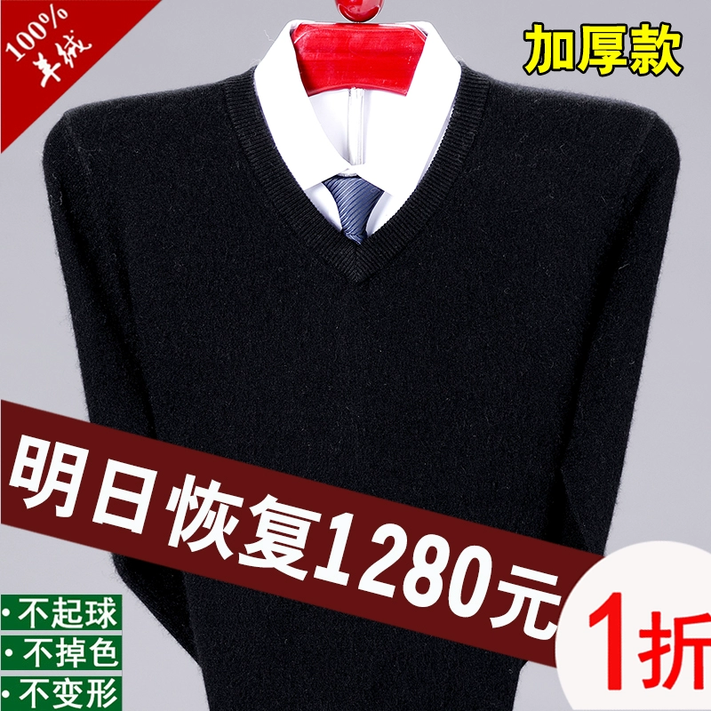 Ordos V-neck thick cashmere sweater for dad